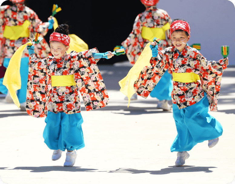 地域の人たちと密接に関わりながら日本の歴史ある文化を学んで知識の幅を広げ、また、オリジナルの歌と踊りをチームで作り上げることでチームワークの大切さや、一人では味わうことの出来ない大きな達成感を感じることができます。