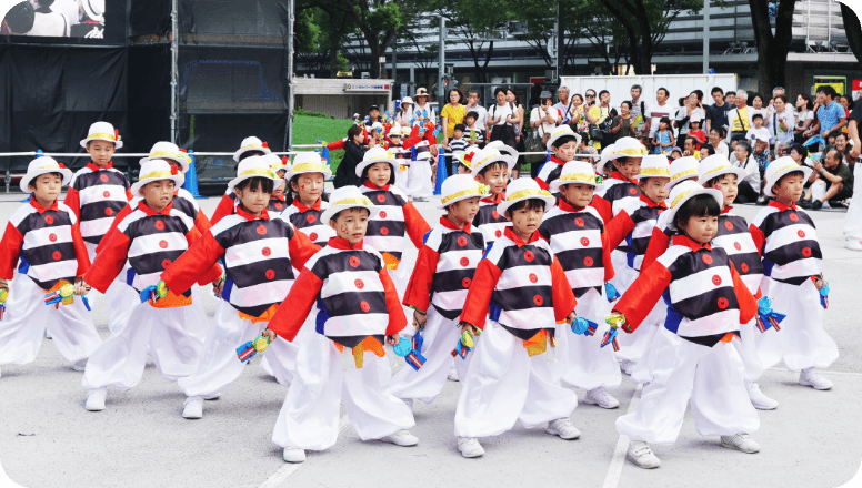昭和保育園の中でも大きなイベントであるにっぽんど真ん中祭りへの参加を始めとして、ほかにも多くの地域のイベントに積極的に参加をしています!