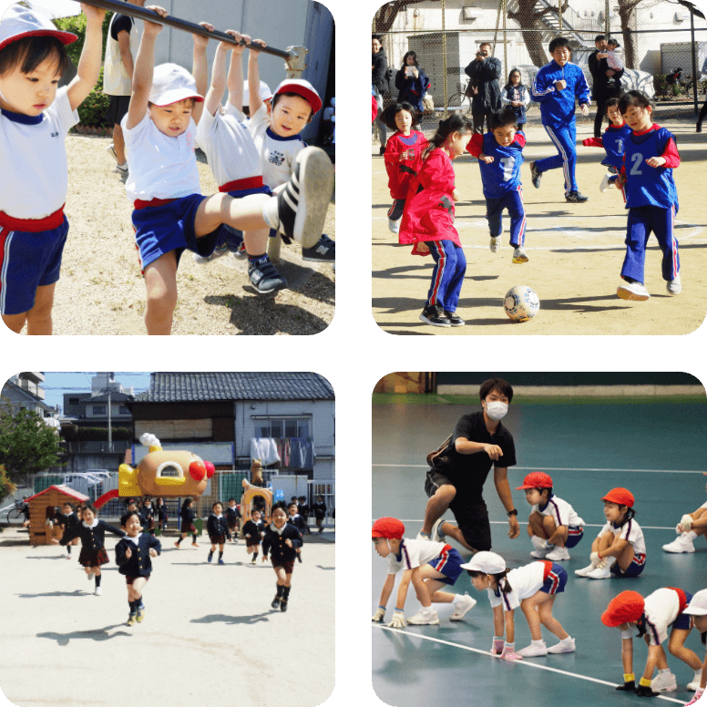幼少期は頭や体が大きく育つ時期です。とくにこの時期に運動をする習慣を身に付けること で、より強い体の基礎を作ることに加え、チームプレイをするための思いやりや、新しいことへ挑戦するチャレンジ精神など、心の成長にも大きく繋がります。