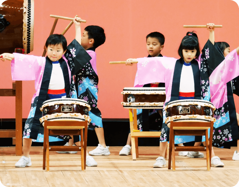 昭和保育園では音体教育を取り入れており、和太鼓やマーチングを行います。