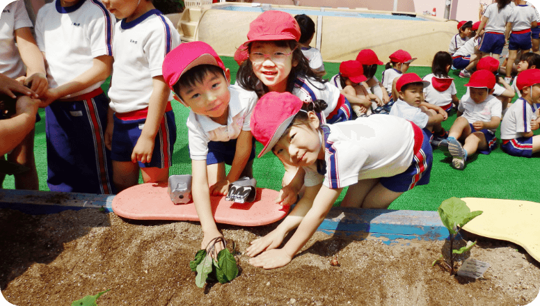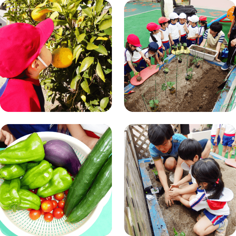 お店で買ってきた野菜や果物を食べるのみでなく、自分の手で命を育てる責任感、日々の変化に気付く観察力、なにより農作物を作る過程を体験することで「食」に対する正しい知識、関心を身に付けることができます。
