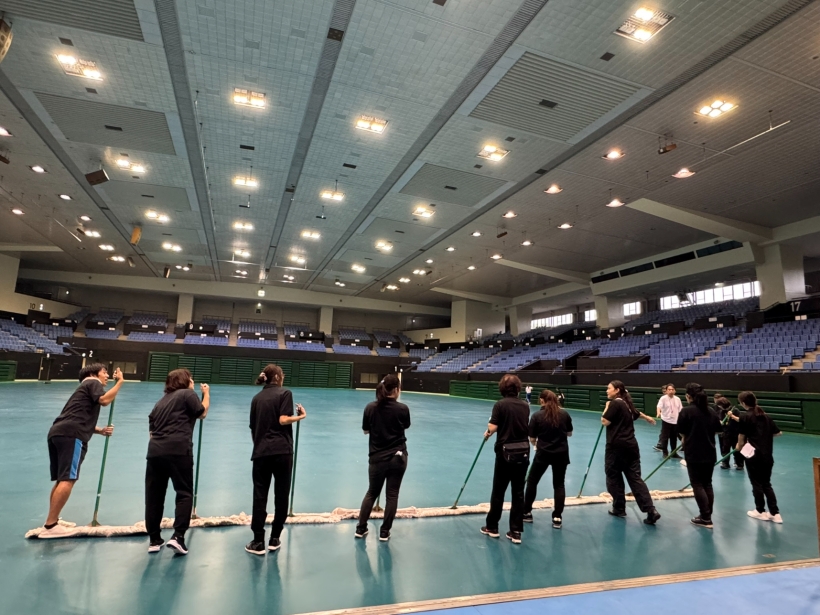 当日には 競技が終わったものから片付け、最後はバスに積み込みモップをかけたり掃除をして