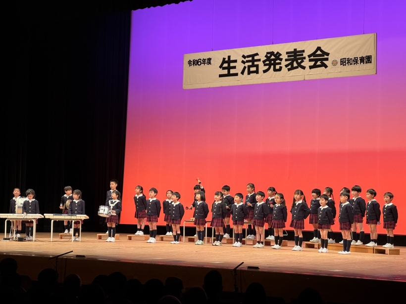 2025.01.31 「令和6年度 生活発表会」を 例年通り金山にあります 「Niterra日本特殊陶業市民会館ビレッジホール」にて開催しました。 今年度は運動会と同様に2部制をやめて 各クラスの発表を保護者の皆さんに観覧していただけました。 当日の子どもたちは朝からスクールバスに乗って 現地で舞台練習をするクラスもあり ワクワクドキドキの1日でした。 練習以上の力を出して かわいくカッコよく演技やお遊戯をしていました。 1年間の成長を保護者のみなさんに観て頂く素晴らしい時間となりました。